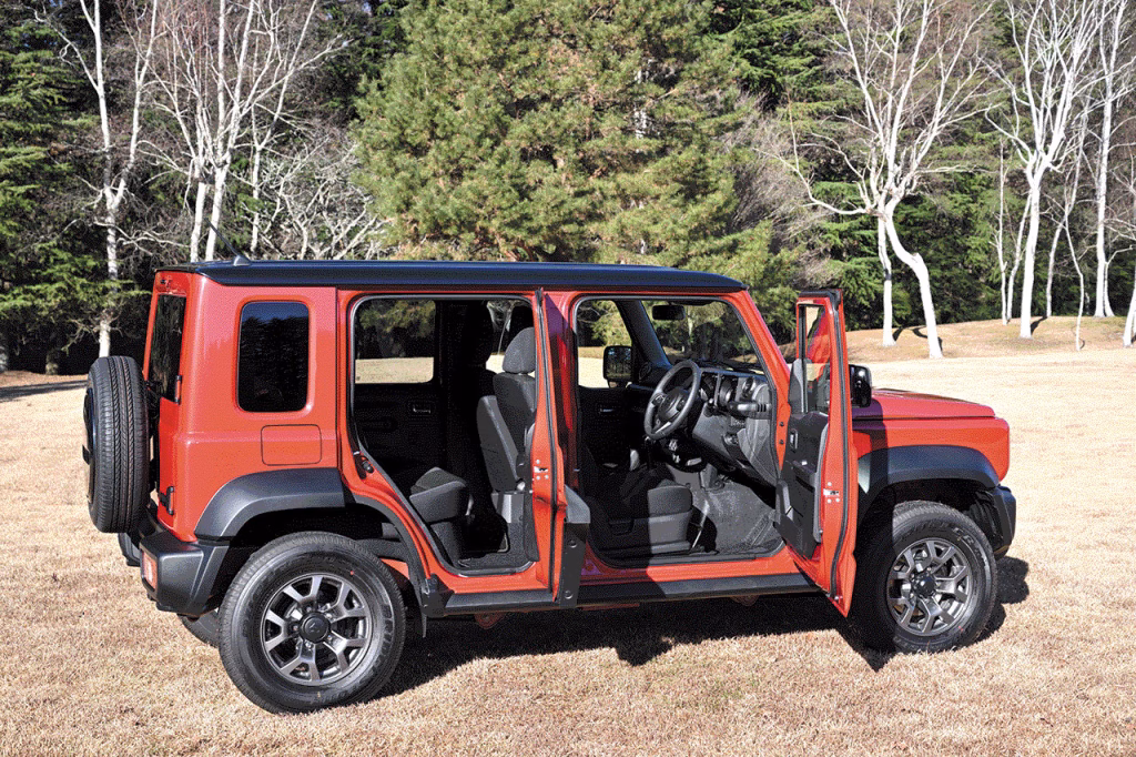 5ドア化に伴いスタイルも大きく変わったが、注目すべきはホイールベース延長分とボディ全長の関係。シエラ比で340㎜延長された分がそのまま全長に反映されており、つまり前後のオーバーハングには一切手を加えず、ホイールベースだけを伸ばしたストレッチバージョンというわけだ。